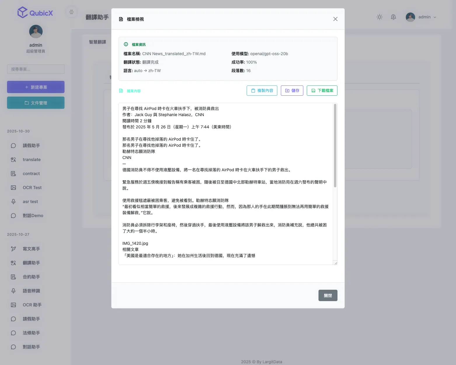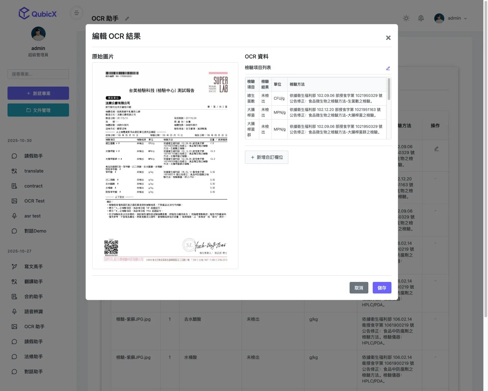 支援 PDF、圖片、掃描文件等多種格式的文字辨識,特別針對中文最佳化,能自動辨識表格結構、擷取關鍵欄位。